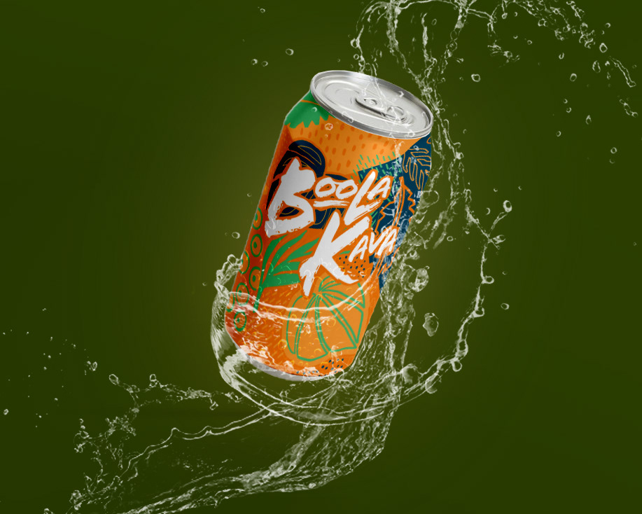Boola Kava uses bright, tropical colors for an eye-catching and refreshing feel. Using natural sweeteners and flavors, the product is revolutionizing the way we see soft-drinks.