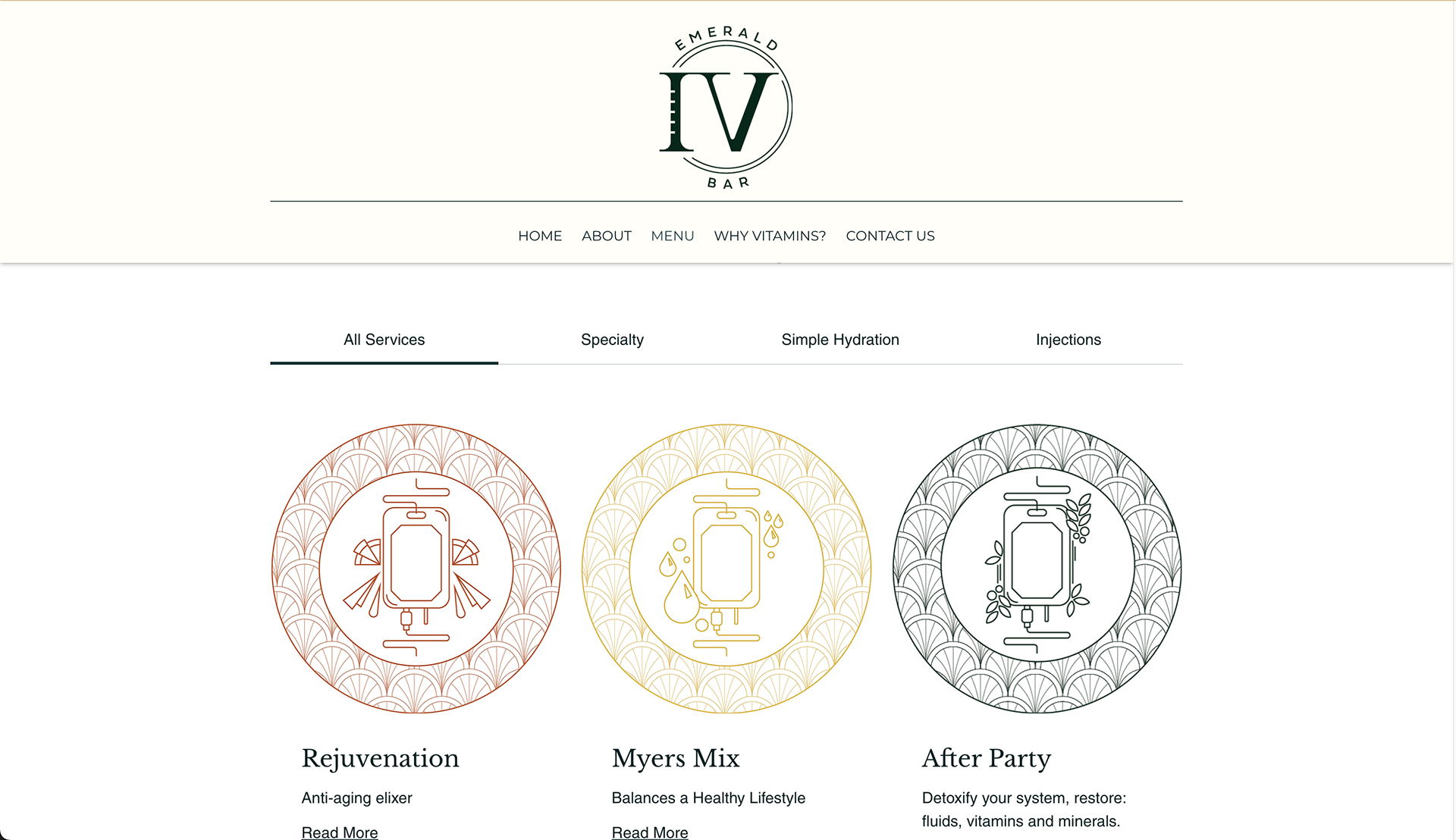 Emerald IV Bar is a startup IV infusion and injection services company in Seattle, WA. The purpose of the brand is to provide premium vitamin infusions for affordable prices. This project included logo and branding graphic design, website design, as well as interior design services.