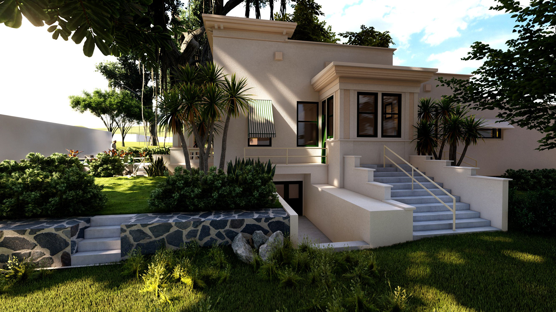 These are proposal renderings for a preservation project AHL is pursuing. The project aims to repair and restore the church to its original exterior appearance. The church was built in the 1910s with little to no documented as-built drawings. The challenge was to model the building as accurate as possible using the limited as-builts the team was provided and existing/original photos of the building. The goal was to envision the building newly restored with existing and newly-proposed landscaping while still capturing the appeal of the original design.