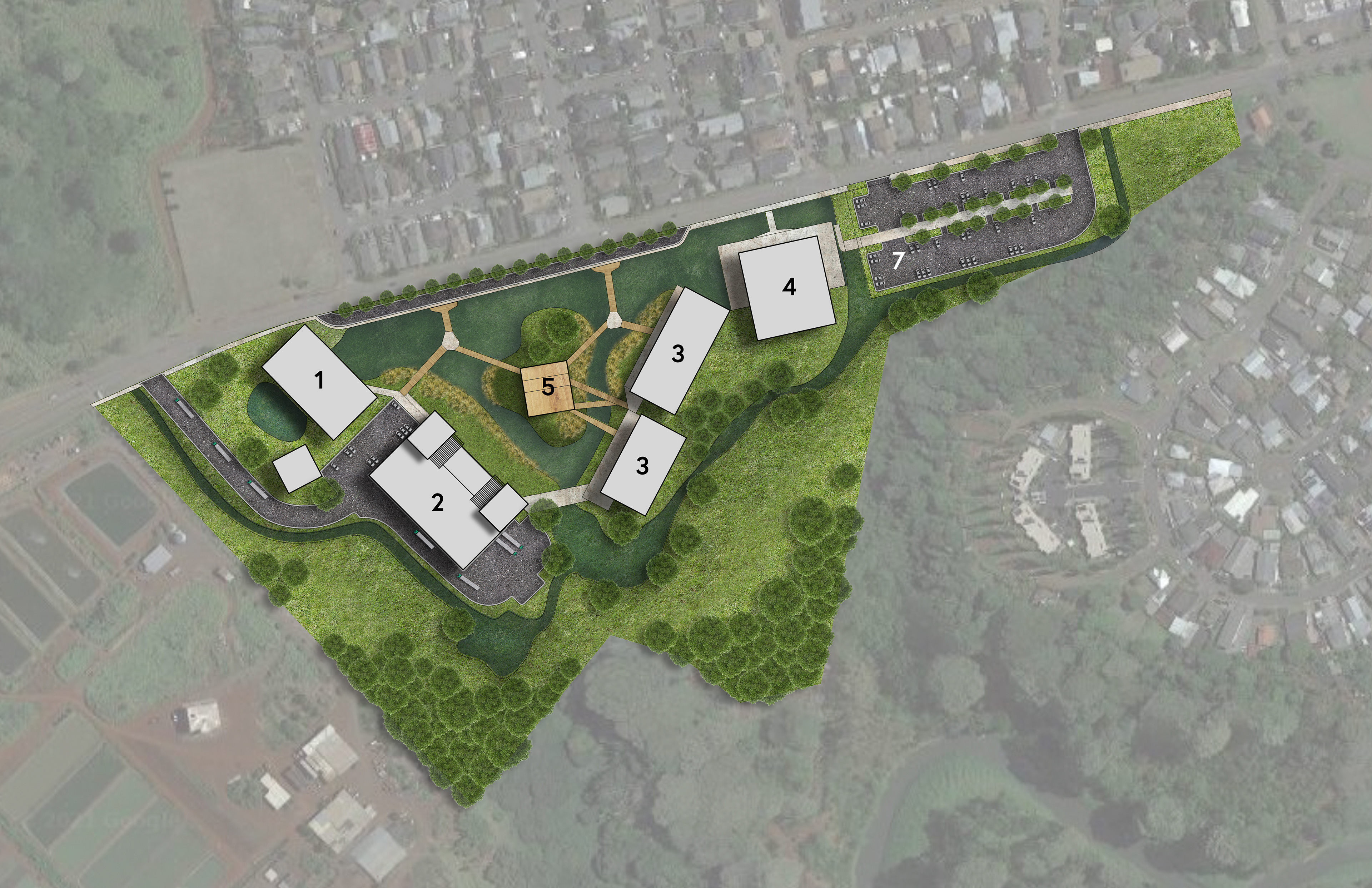 At the core of this food hub are processing, packaging, housing, educational, and retail facilities that will help farmers to meet new Food Safety Standards, and support an agribusiness industry aimed at revitalizing Wahiawa and feeding our state. The University of Arkansas invited the University of Hawai’i School of Architecture to collaborate on the design of the Master plan, which initiated this multi-institutional collaboration.